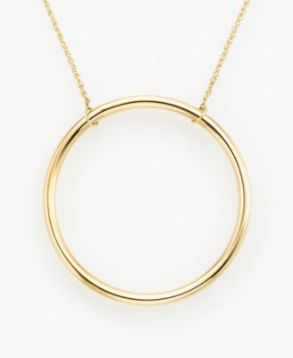 I'm so happy to finally see a simple circle necklace in gold. This will look gorgeous with a low v-neck black tank for a night out on the town. The classic shape will also look great peeking out from a button down shirt during the daytime. At only $66.99, marked down from $160, it is a bargain for real 14k jewelry and since this design is usually available only in silver it will stand out in a crowd.